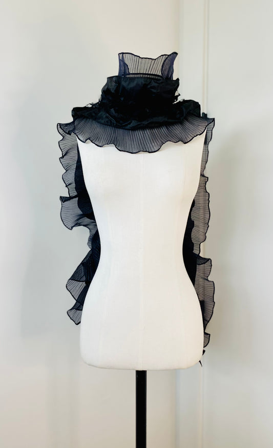 Y2K Black Avantgarde Organza Pleated Sculptural Shawl Scarf