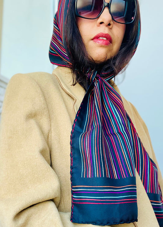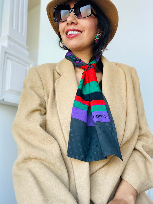 70s Emanuel Ungaro Rainbow Fun Stripe Long Silk Scarf Hand Rolled 42" X 11"