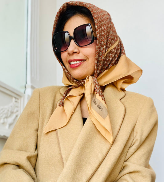 70s Geoffrey Beene Oversized Square Neutral Color Silk Scarf Hand Rolled Finish 30" X 31"