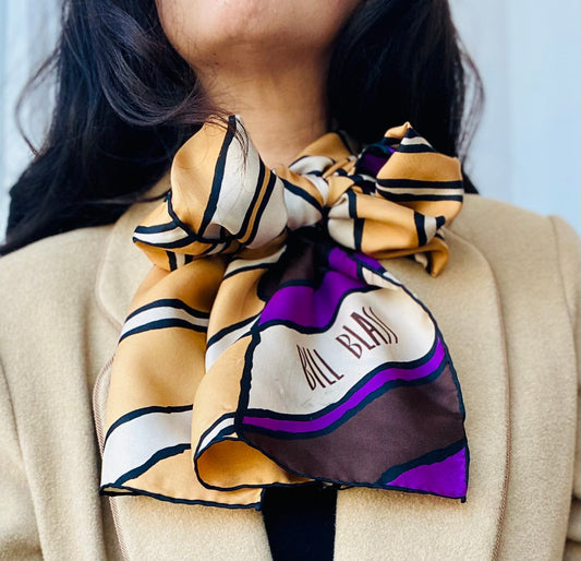 70s Groovy Retro Oversized Bill Blass Long Silk Scarf Hand Rolled 58" X 13"
