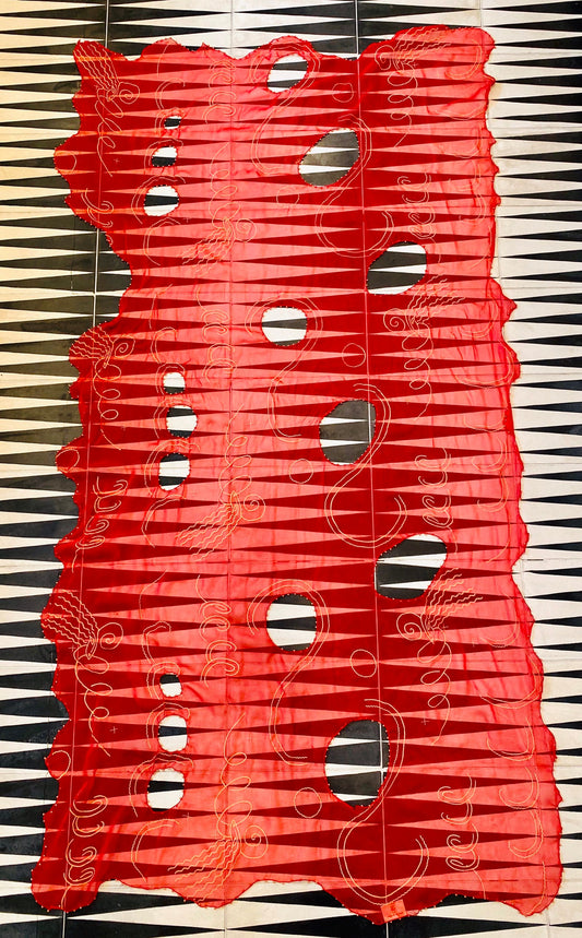 80s Zandra Rhodes Red "Lady Head" Print Punk Silk Shawl