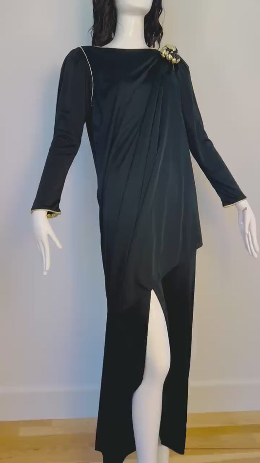 Disco Era Bill Tice Black and Gold Jersey Gown