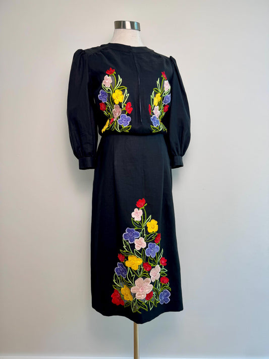 Vintage Karl Lagerfeld for Tiazini Roma Black Linen Floral Dress