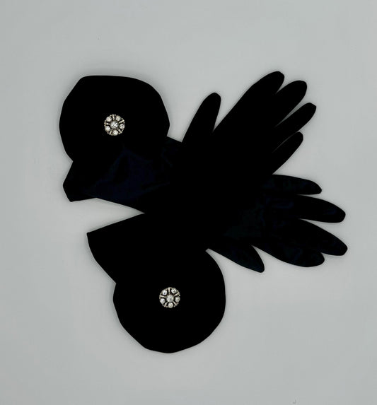 Vintage Pancaldi Tall Velvet and Ribbon Stacked Heel Black Gogo Boots