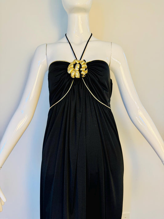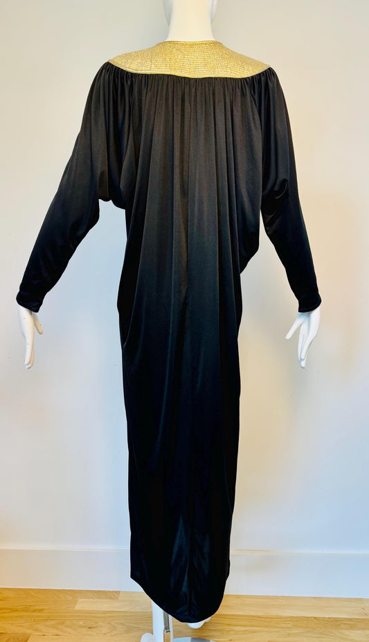 Disco Era Bill Tice Black and Gold Jersey Gown