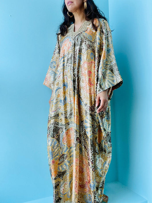 70s Lucie Ann Gold Metallic Brocade Hostess Caftan Dress