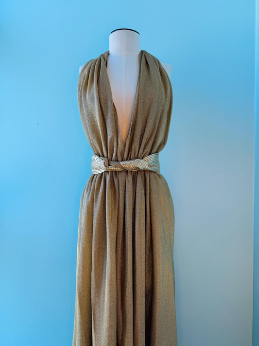 Disco Era Bill Tice Gold Lurex Halter Backless Dress