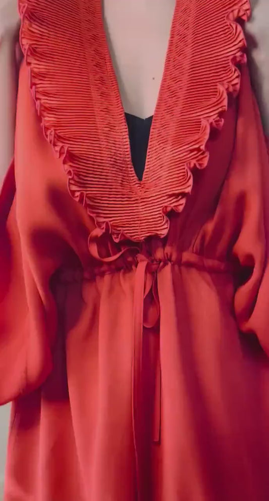 Vintage Zandra Rhodes Orange Red Ruffled Neck Caftan