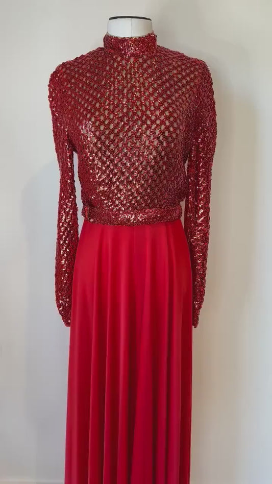 60s Lilli Diamond Red Embellished Palazzo Jumpsuit Dead Stock