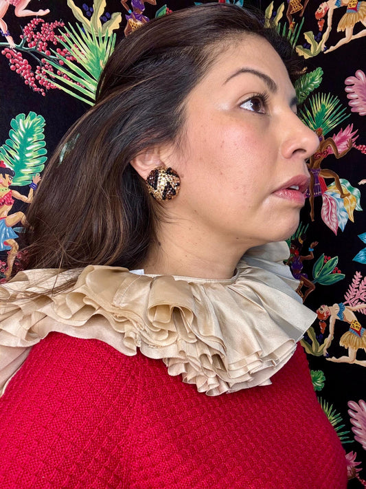 Vintage Disco Richard KERR Embellished Dome Statement Earrings Collectors