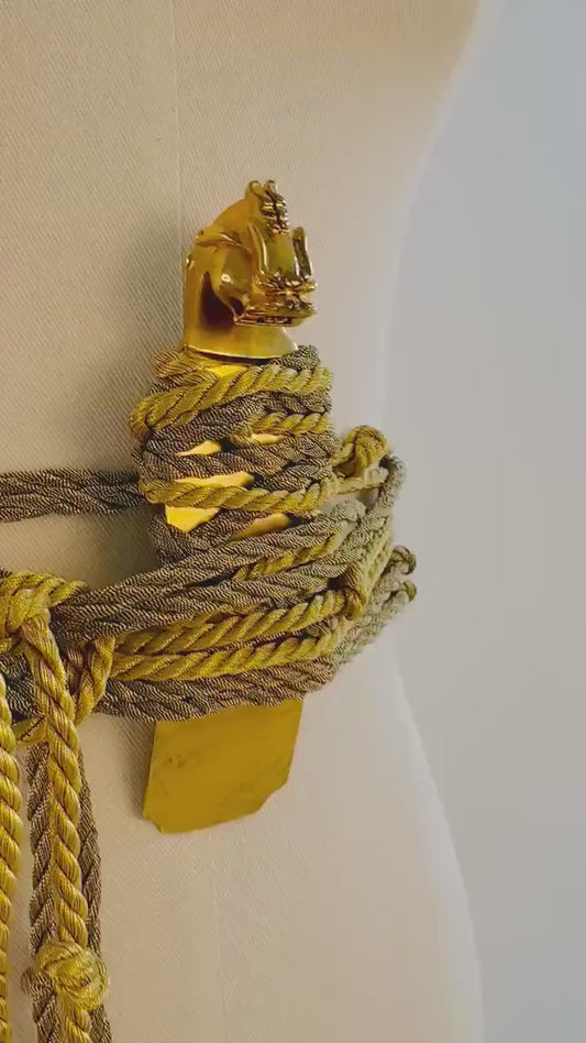 90s Gold Plated Kenneth Jay Lane Embellished Ram Gold Rope Necklace