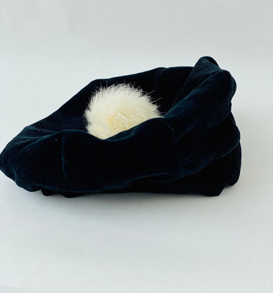 60s Kids Groovy Black Velvet Slouchy Beret With White Fur Pom Pom Top Hat 21" round