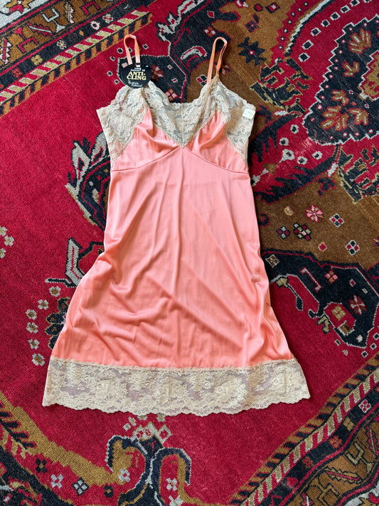 NWT 50's Henson Kickernick Peach Nylon and Lace Negligee Slip Dress