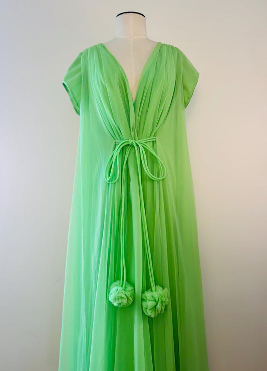 Vintage Lucie Ann Sweeping Chiffon Pom Pom Peignoir As Seen on Bewitched