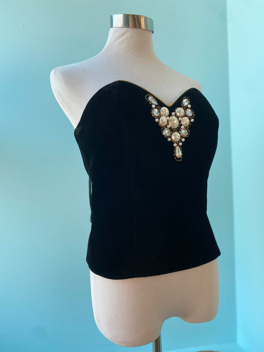 90s PATRA Black Velvet Embellished Corset Bustier Large