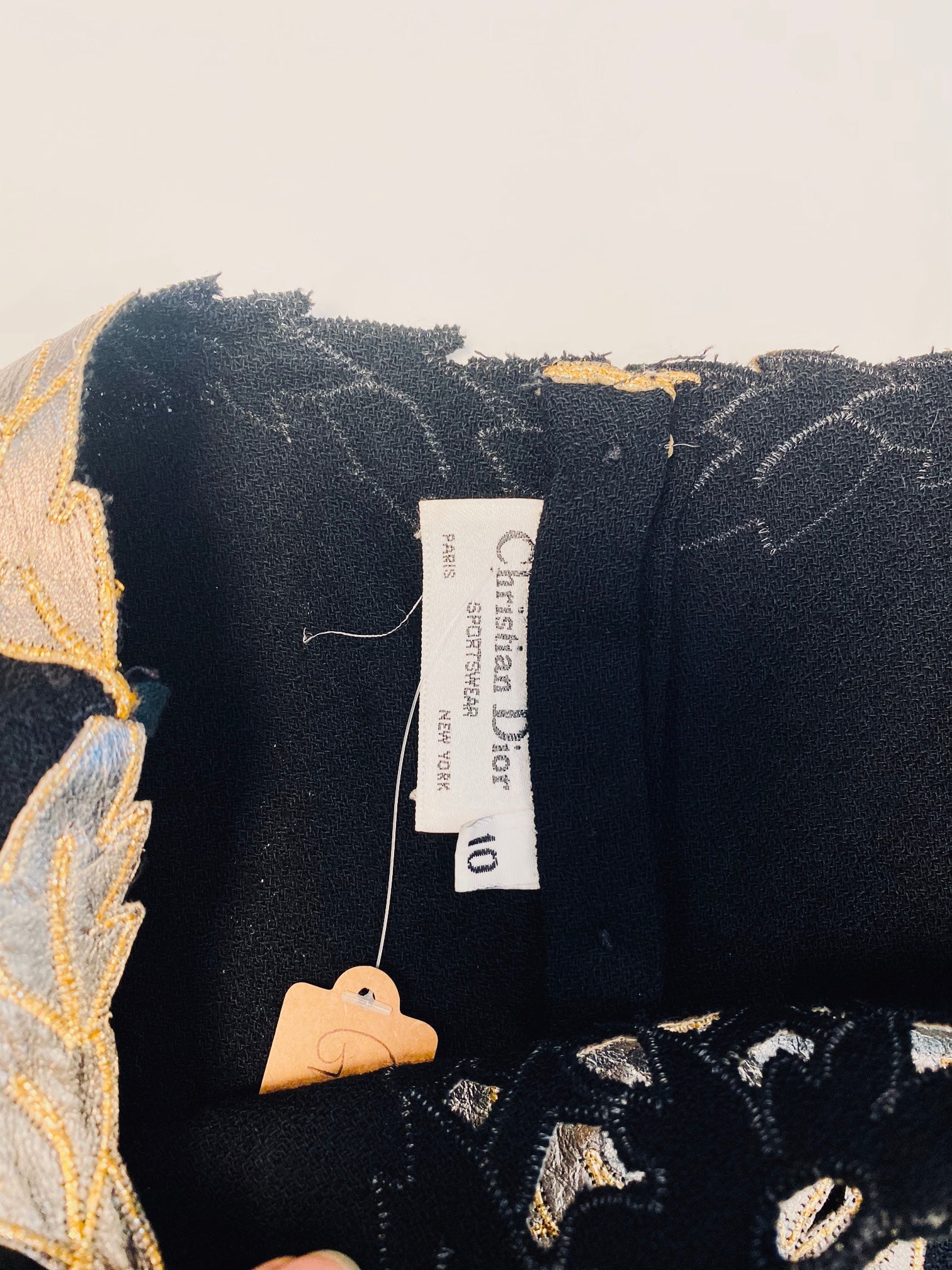 Vintage 80s Christian Dior Wool Crepe Gold Leather Detail Long Sleeve Top