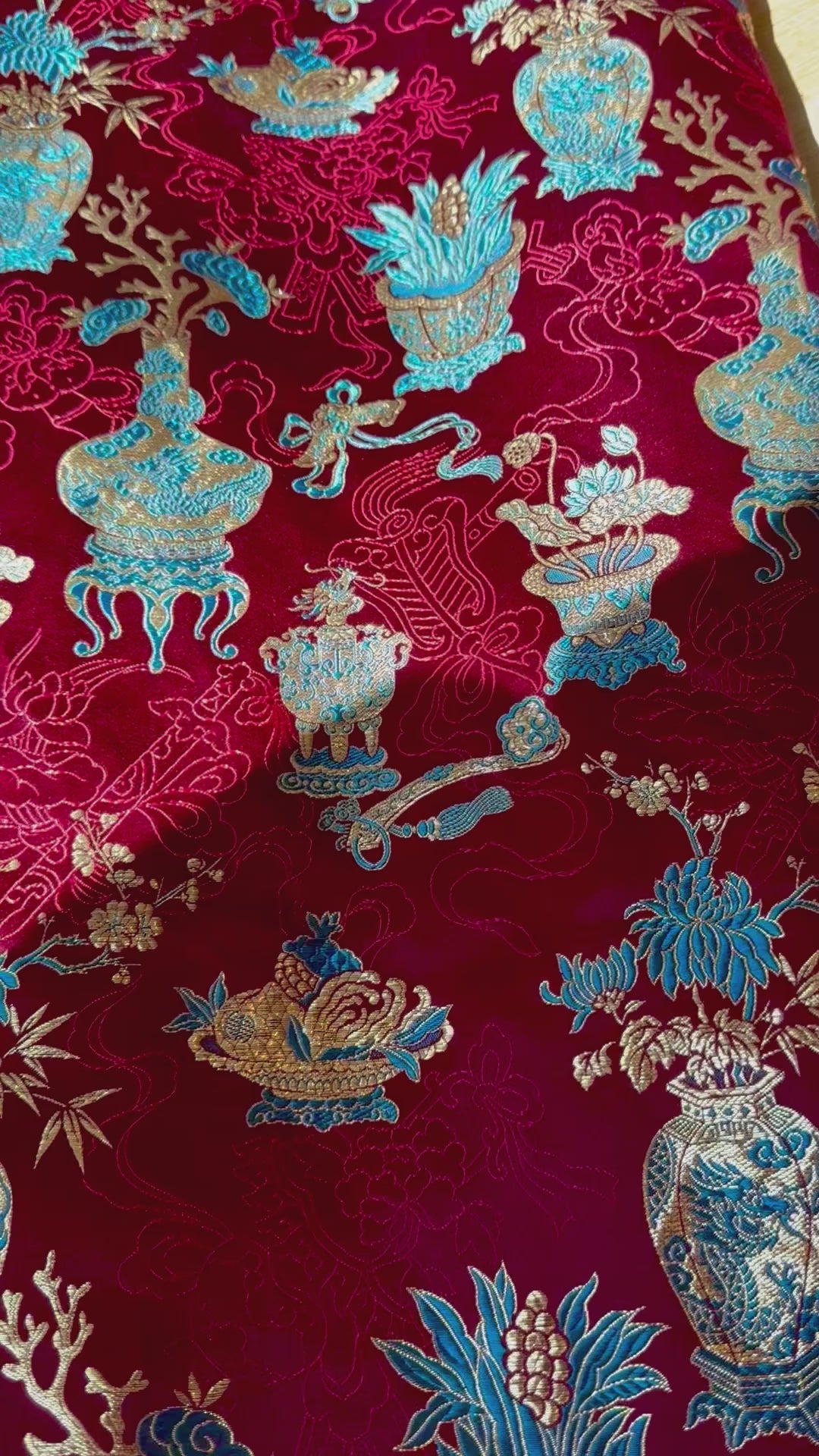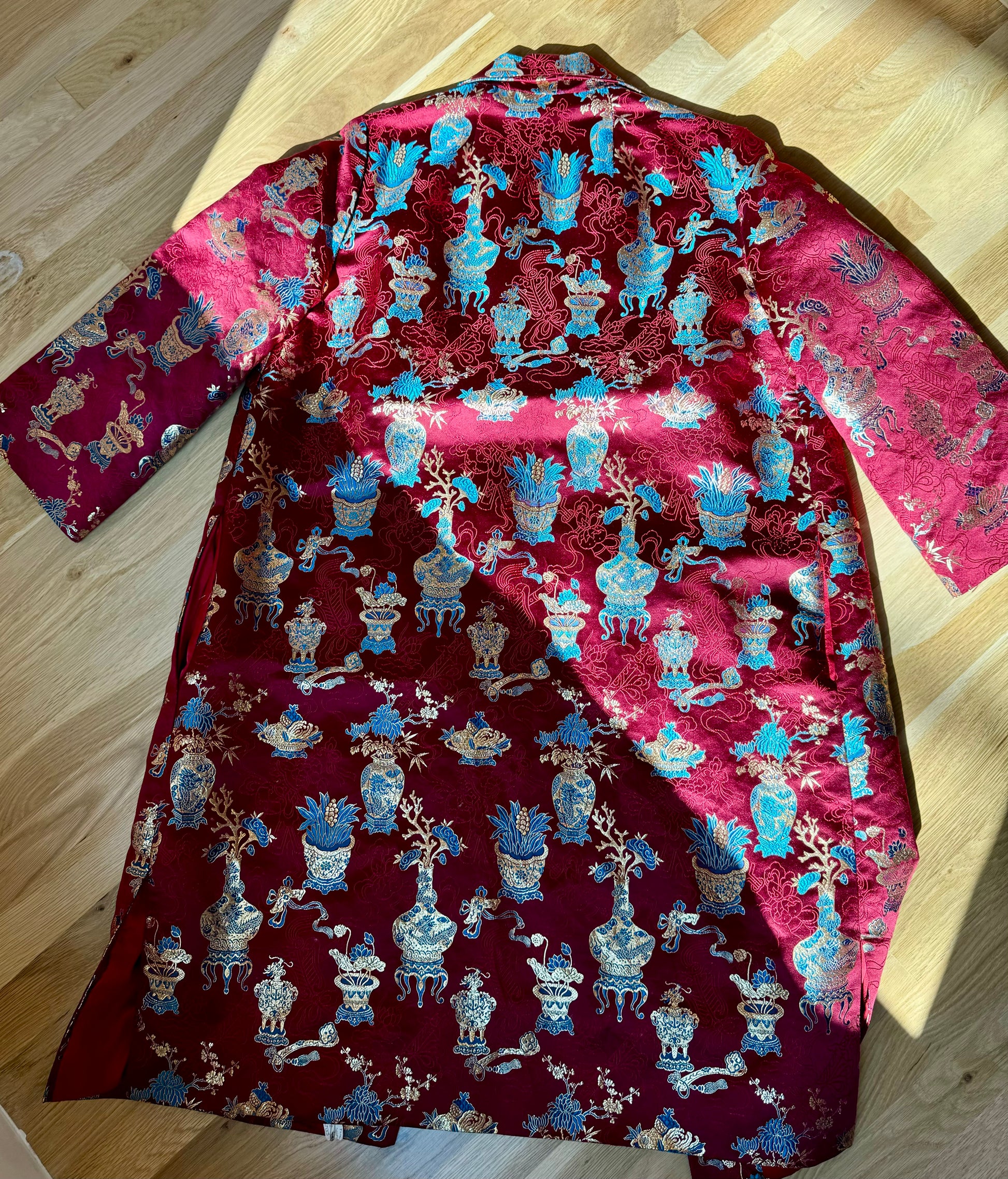 Vintage Red Brocade Chinoiserie Brocade Duster Swing Jacket